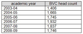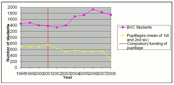 After an increase in 2007 (which might have been caused by concern that deferral of call would be implemented) BVC numbers are now falling. This could be attributed to the financial climate, specifically at the beginning of term in autumn 2008.