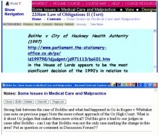 - many VLEs allow students to make their own notes and connect these to each page of the web. Encourage your students to use this facility by building a demonstration page of how this can add great value to student learning. Below is an example of such a page from part of a web (in WebCT) on medical malpractice. It shows how a student can add value to the resources in the web by adding their own questions, comments and other aides memoir. The link to the law report, together with an earlier study of an Australian case, allows the student to make the necessary connections, write notes to themselves and include reminders of action points.