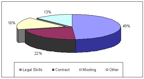 It is intended to examine the reasons why mooting takes place predominantly in the first year during phase III, but our analysis of the modules during which a moot takes place indicates that the first year is deliberately chosen, probably because it inculcates certain skills early in the curriculum. This is borne out by the nature of the modules in which mooting is used, as demonstrated by the following diagram: