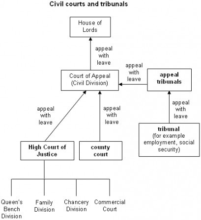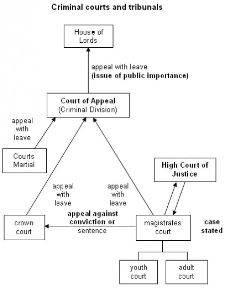 This page, part of a set of materials taken from Law in action: learning through scripted role plays, shows the place of the magistrates court in the overall structure of the courts in England and Wales.